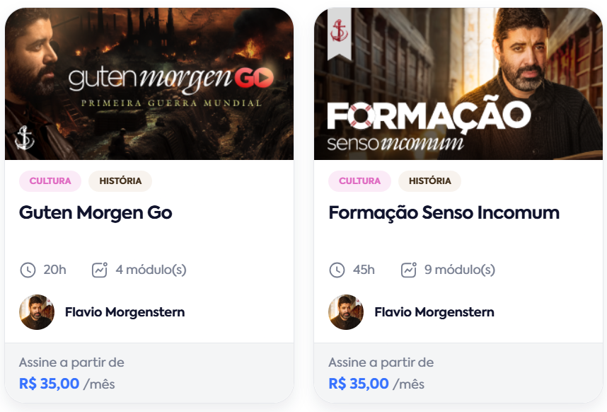 Seja bem vindo caso queira participar! Basta se cadastrar na Formação Senso Incomum na Cursology e nos encontrar por lá. Lembrando que temos também o Guten Morgen Go, nosso curso completo sobre a Primeira Guerra Mundial: